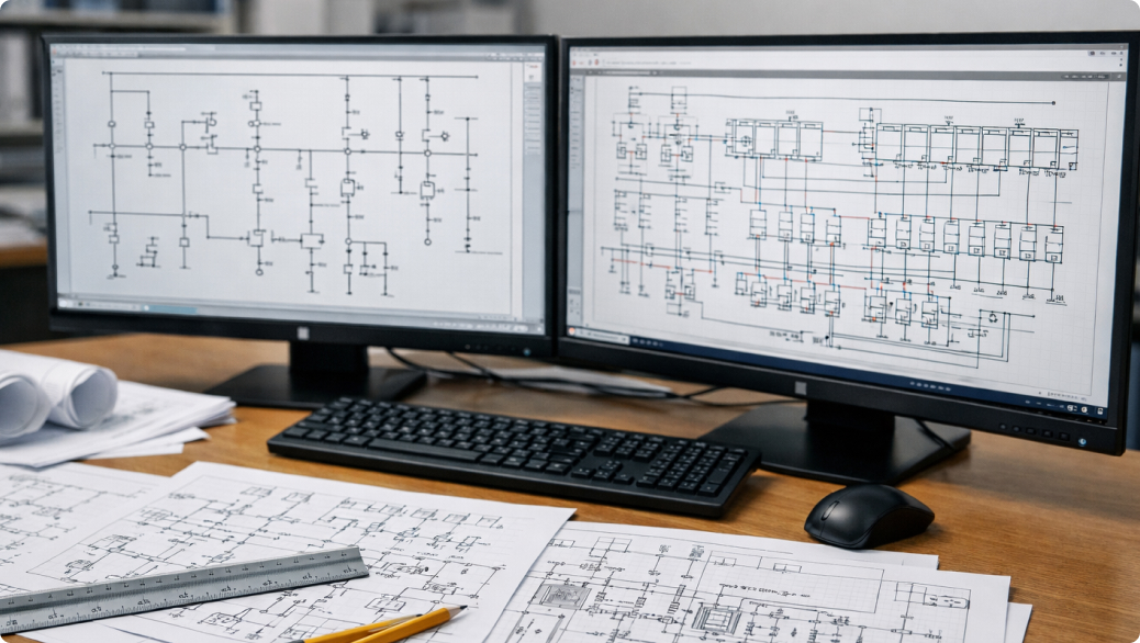 специализированного ПО, которое ускоряет расчёты и повышает точность документации. Это, конечно же, AutoCAD Electrical для разработки принципиальных и монтажных схем. Кроме того, EPLAN Electric P8** для проектирования распределительных щитов и шкафов управления, Revit MEP — BIM-проектирование инженерных систем зданий и другие.