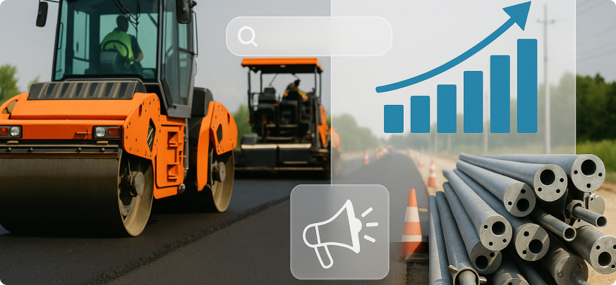 Рынок дорожного строительства высококонкурентен: тендеры часто выигрывают крупные подрядчики с сильным брендом. Для небольших компаний важно использовать транзакционные запросы, локальные ключи и точный таргетинг.