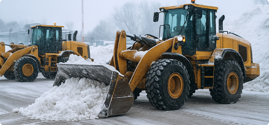 Мини-погрузчики позволяют собирать снег вплотную к бордюрам, зданиям и парковочным местам. Дополнительное навесное оборудование — щётки, отвалы, снегоочистители — делает их универсальными для разных типов снега.