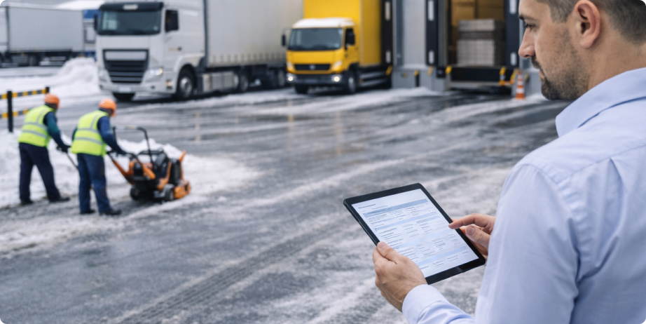 Рампы и ворота концентрируют риски: снег уплотняют колёса, вода подмерзает на уклонах, наледь мешает работе док-оборудования и ворот, люди скользят на кромках. Если реагировать только “когда совсем плохо”, склад теряет темп: транспорт ждёт, растёт риск инцидентов. Поэтому уборка рампы зимой должна работать как режим.