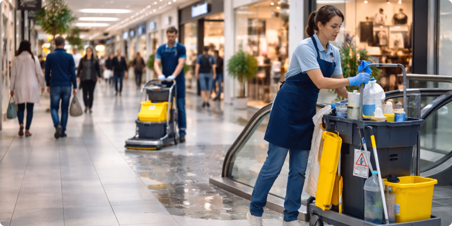 Для организации уборки торгового центра и клининга ТЦ при постоянном трафике достаточно обратиться в ООО «Алир». После обследования зон и режима работы подготовят дневной и ночной регламент, график и расчёт под фактическую нагрузку.