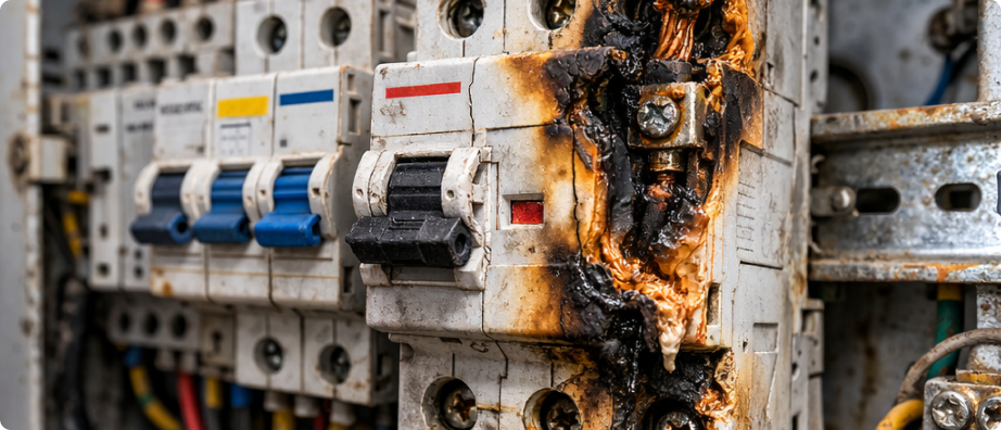 Не всегда нужно ждать акта лаборатории, чтобы понять, что щит аварийный. Опытный главный энергетик или инженер эксплуатации обратит внимание на следующие маркеры: