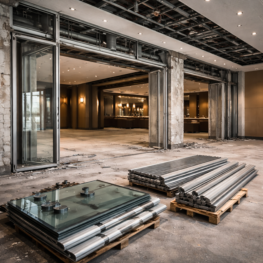 Работы начинаются с выезда на объект и осмотра: определяется тип витрины или входной группы, материалы (алюминиевые/стальные профили, стекло, панели), узлы крепления, примыкания к полу, потолку и стенам, наличие электрики и подсветки, требования УК/ТРЦ по доступу и времени работ. На основании осмотра составляется смета и календарный план, в котором фиксируются последовательность разборки, допустимые часы шумных операций и логистика выноса.