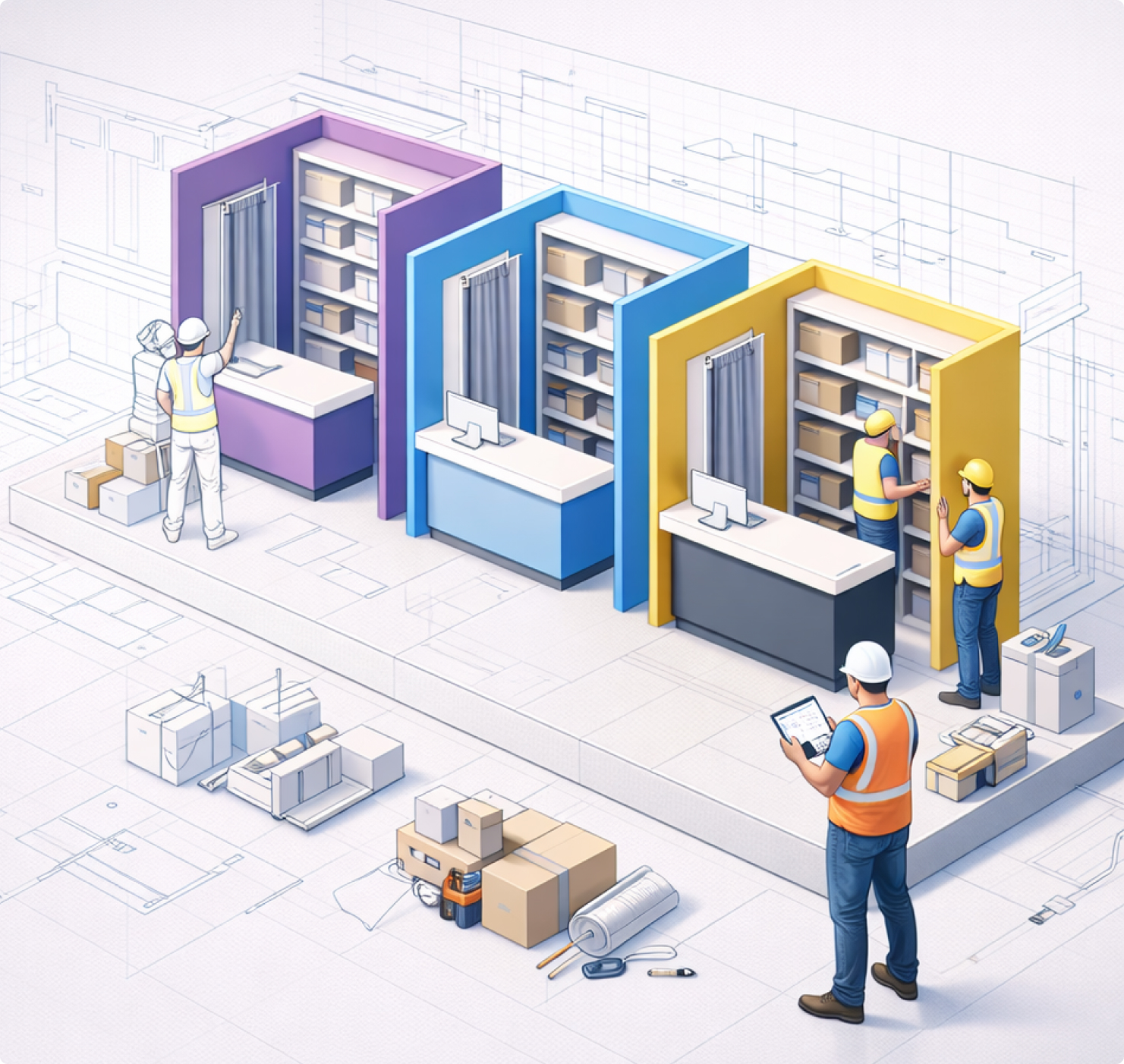 Бригады выполняют шумные и пыльные процессы в нерабочее время, выстраивают график, чтобы не останавливать работу бизнеса.